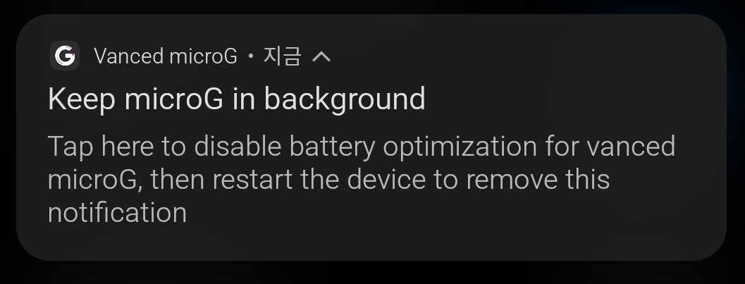 A: 구글 로그인을 위해 만든 microG가 배터리 절전을 위해 꺼질 수 있어서 알려주는겁니다.