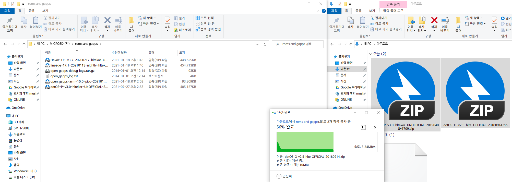 구글 관련 서비스를 이용하기 위해, 미리 다운받아놓은 갭스 파일을 아까와 같은 방법으로 플래싱한다