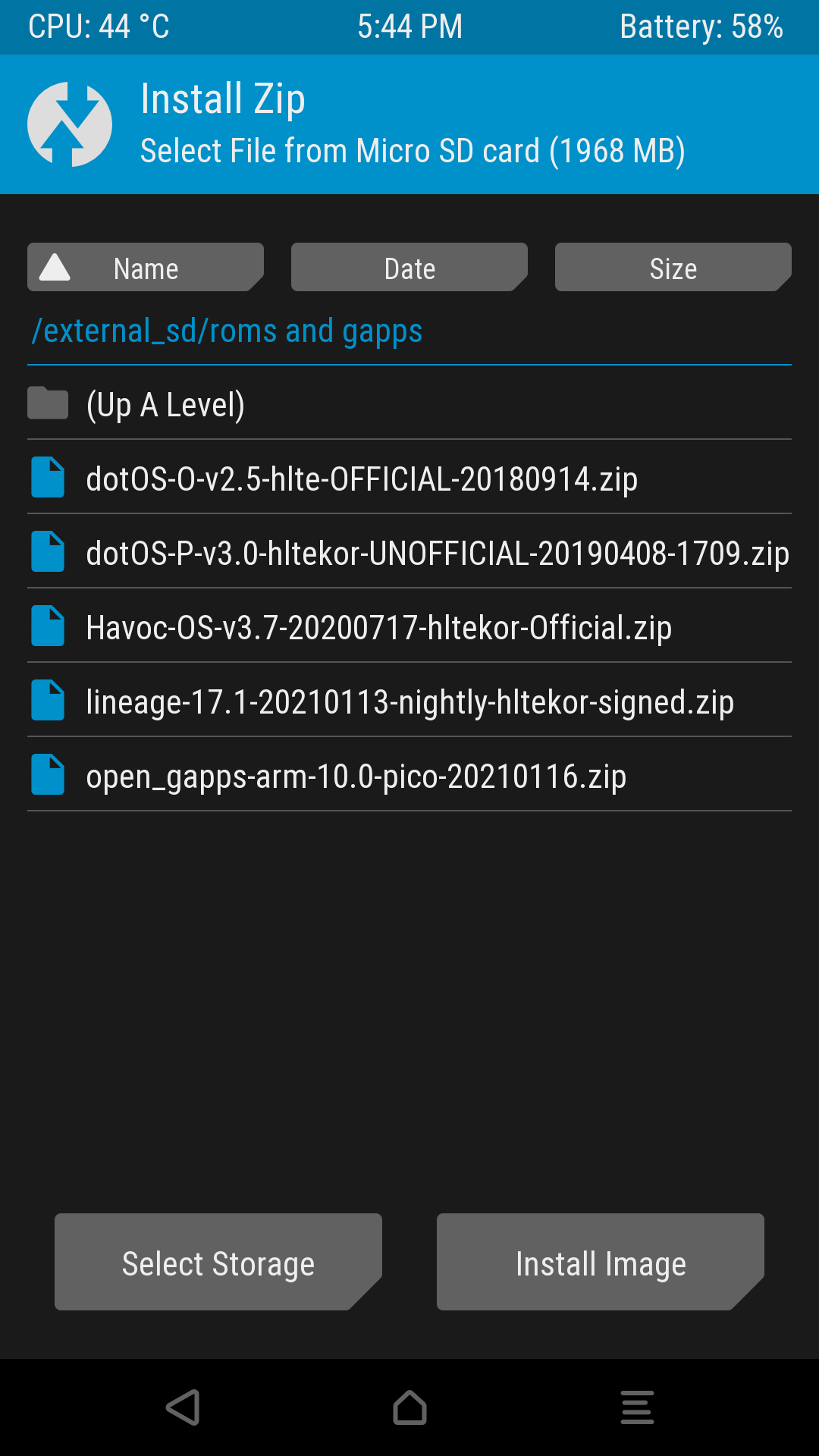 맨 위에 Install Zip이라고 쓰여있는 걸 확인한 후(만약 Install Image라고 쓰여있을 경우에는 맨 아래의 Install Zip을 눌러서 맨 위의 글씨가 Install Zip으로 바뀌게 한다)