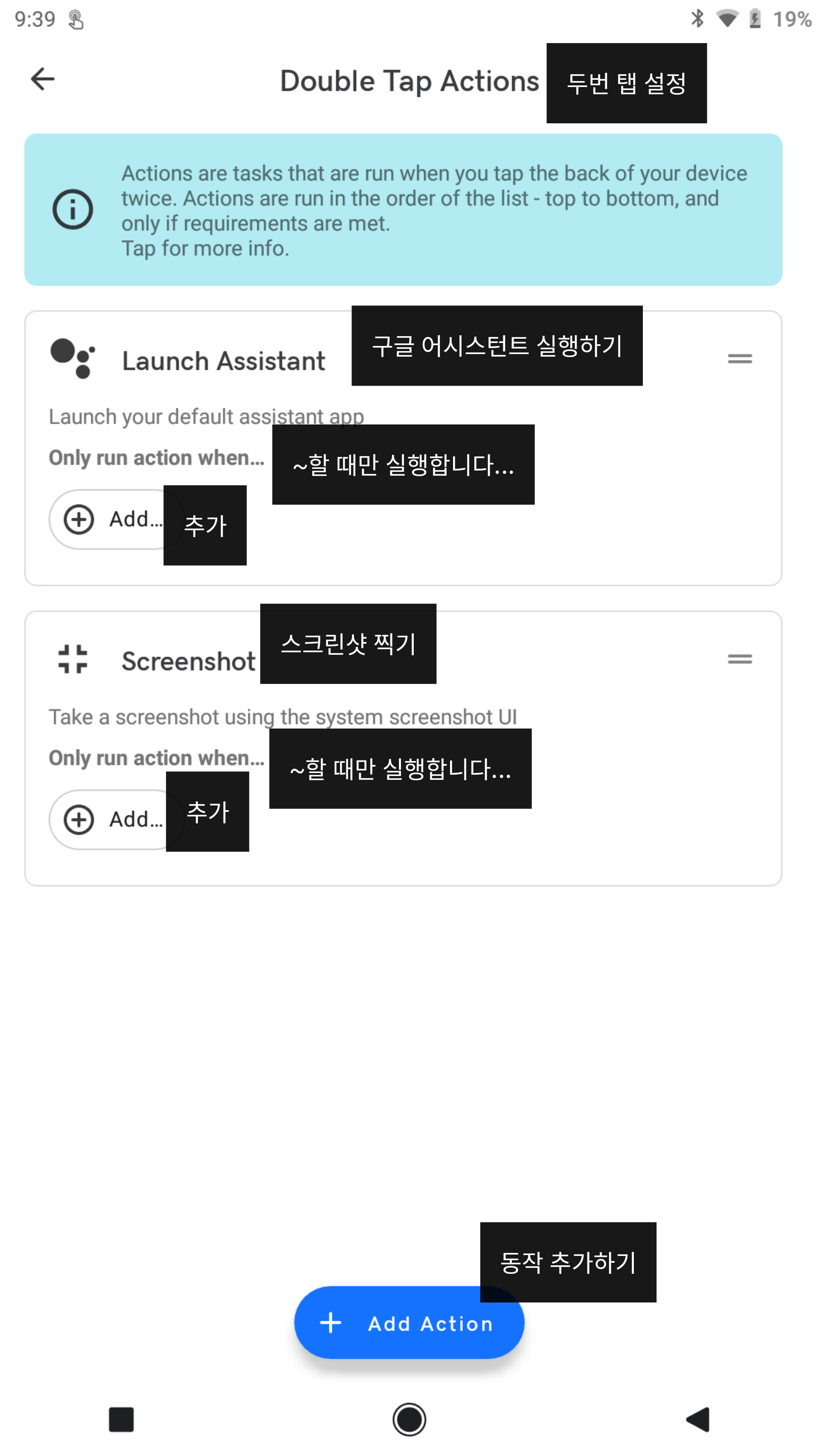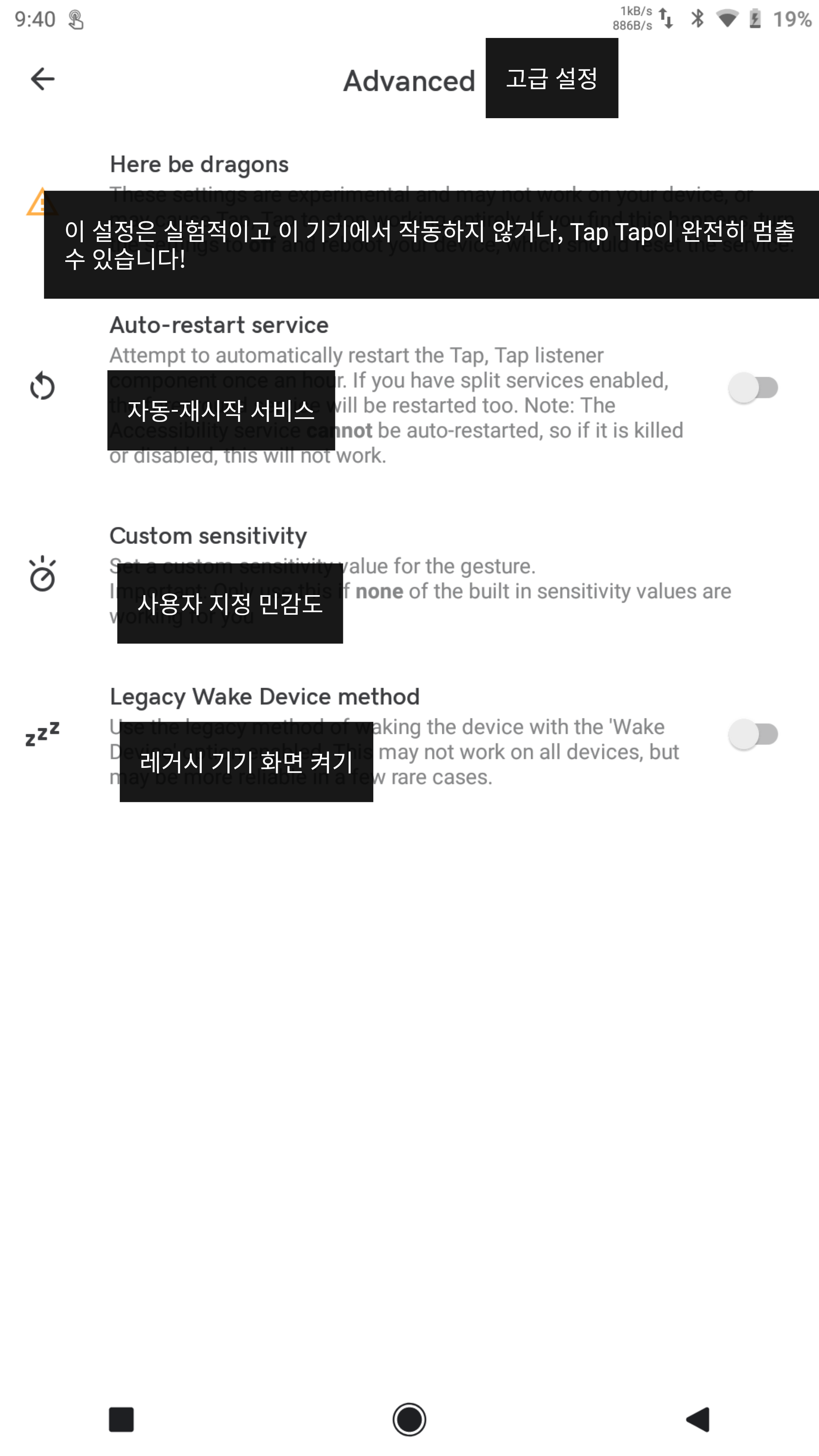 이 글에서 설명하는 기능은 아이폰에서 뒷면을 "똑똑" 노크해서 원하는 기능을 실행시키는 기능을 안드로이드에서 구연한 것입니다.