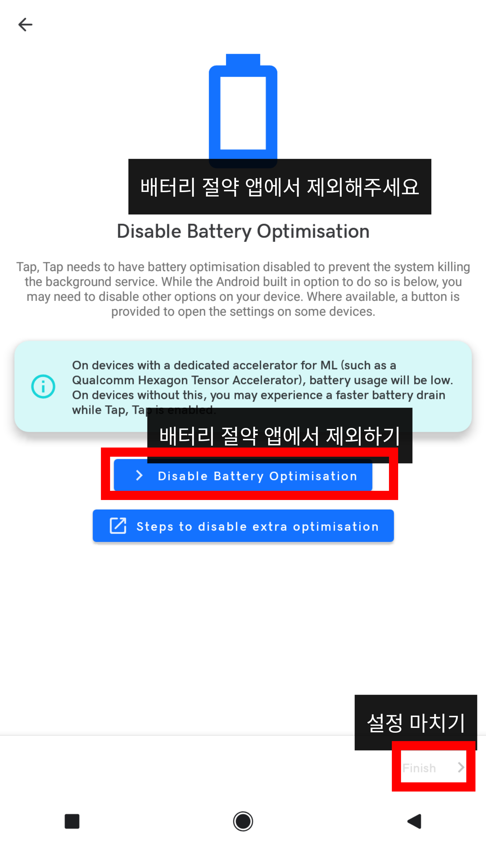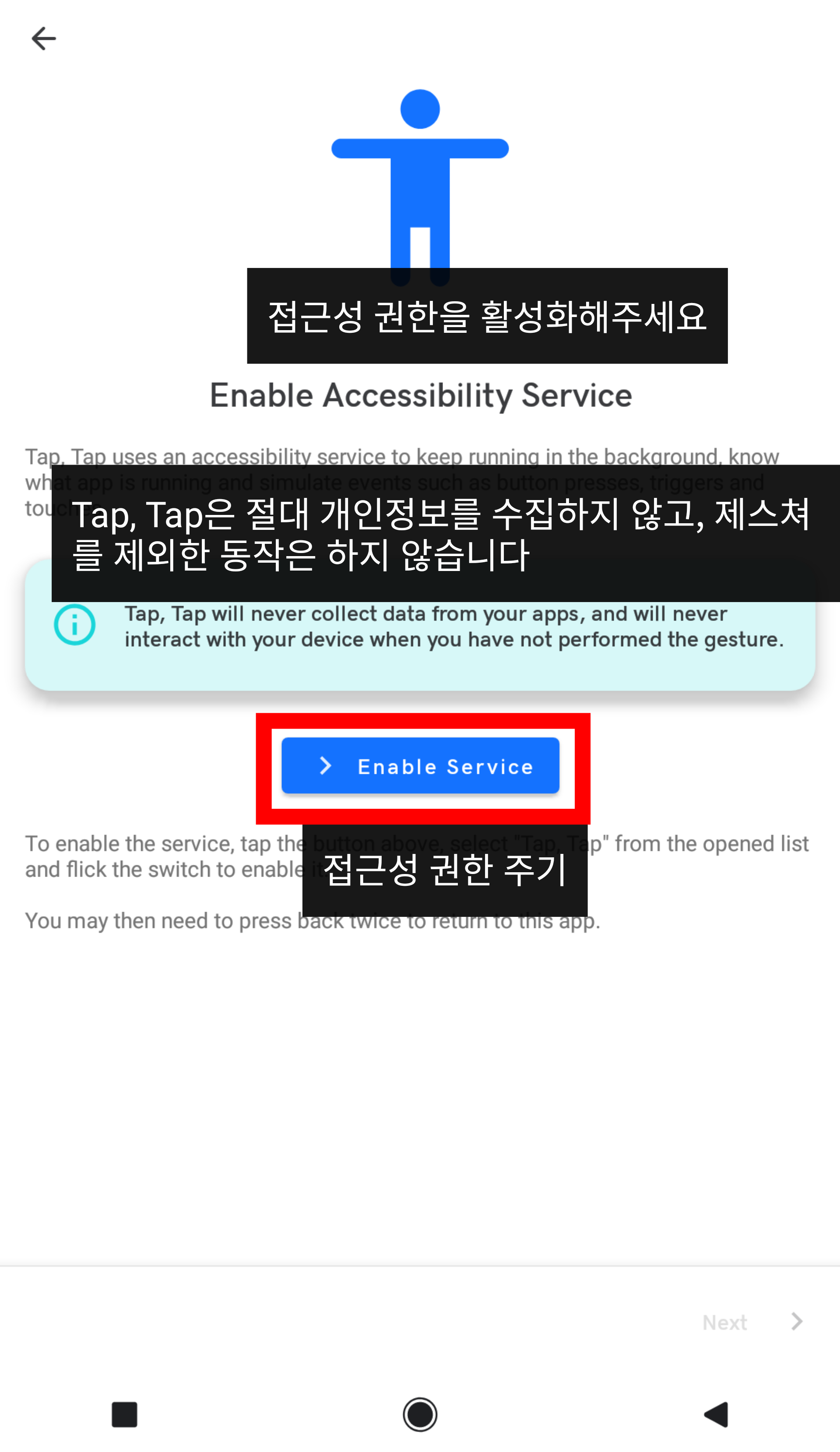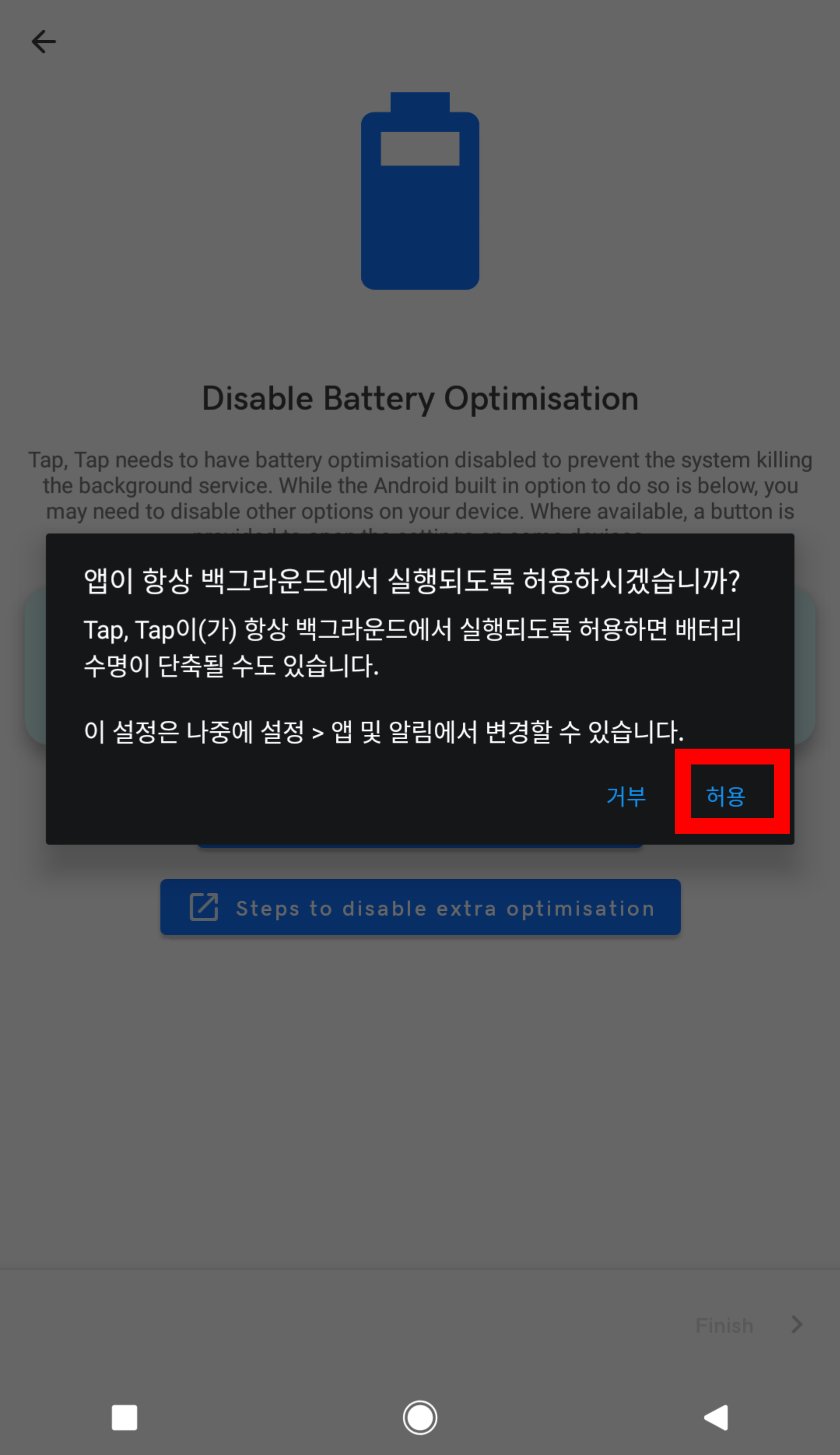 Tap, Tap이 실행중이면 알림창에 알림이 뜨는데, 알림을 길게 눌러서 알림 끄기하면 알림이 없어진다.