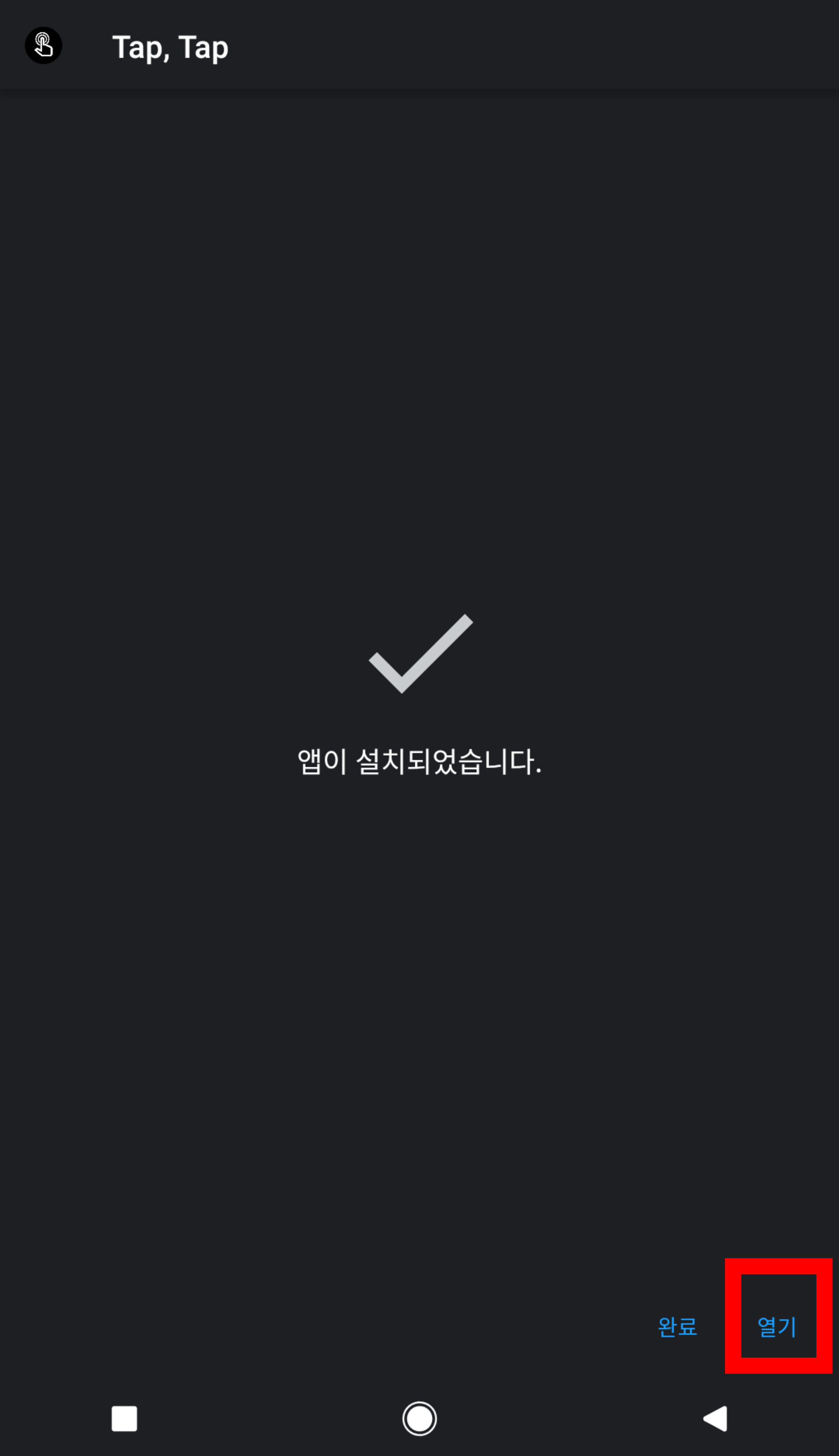 설치가 끝나면 열기를 눌러 Tap, Tap 앱을 연다