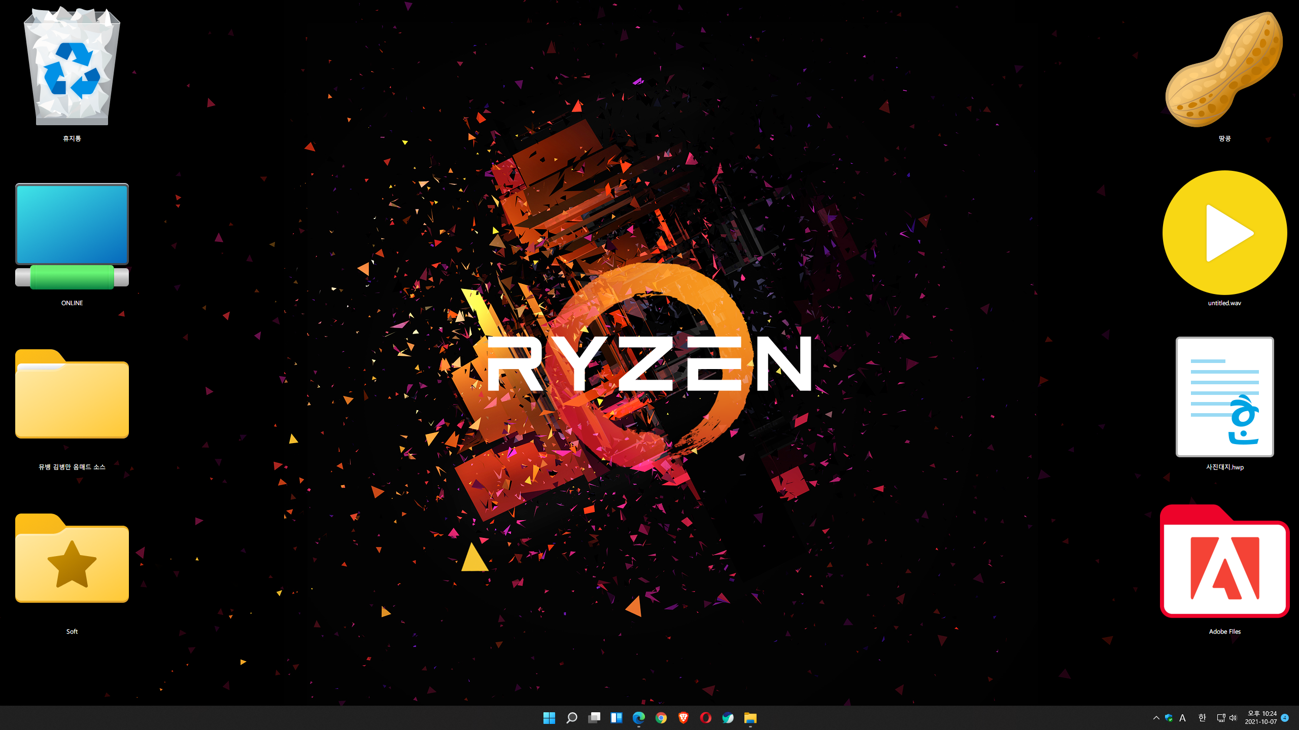 세팅이 끝나면 바탕화면 이미지, 아이콘 등이 윈도우 10때와 동일하게 나옵니다.