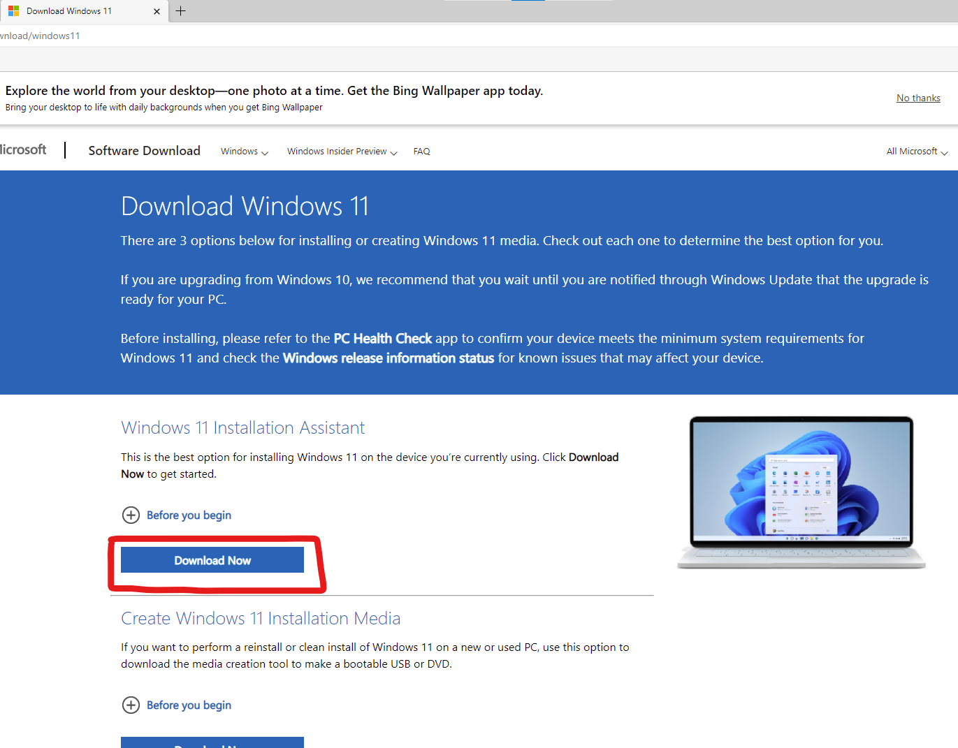 2. Windows 11 설치 도우미를 통한 업그레이드 (다운로드 링크)