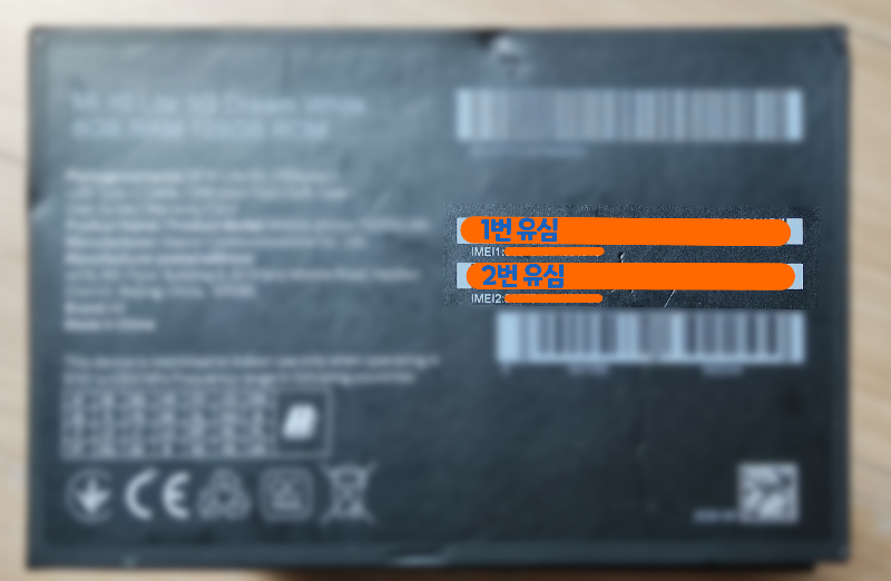 제품 포장 박스 겉면에도 IMEI가 적혀있습니다.