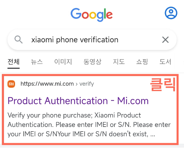 구글에 xiaomi phone verification 검색 후 Product Authentication을 클릭해도 됩니다