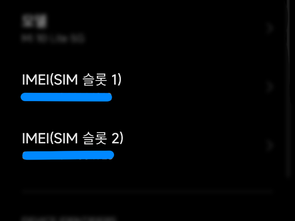 샤오미폰은 대부분 듀얼심을 지원해 IMEI값도 2개입니다. (샤오미뿐만 아니라 듀얼심인 모든 스마트폰은 IMEI가 2개임)
