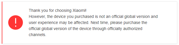 샤오미 서버에 IMEI가 등록되지 않은 제품입니다.