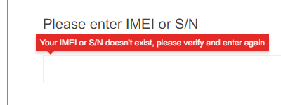 "IMEI 또는 S/N이 존재하지 않습니다. 확인하고 다시 입력하세요."