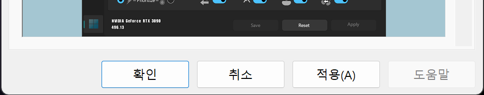 확인버튼 또는 적용버튼을 눌러 바꾼 테마를 저장하세요